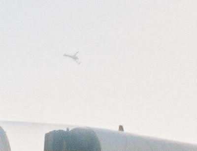 Starship and Alpha Jet (I am not absolutely certain of the identifications from looking at my blowups) come in low as SpaceShipOne glides into a landing.