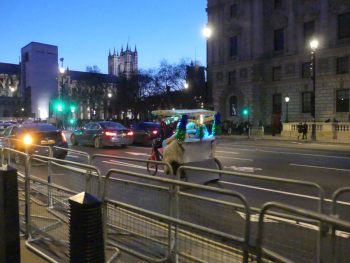 Next, a happy musical memory. You can’t hear it, but I will whenever I look at this photo, of a tricycle-taxi hurtling towards Parliament Square: